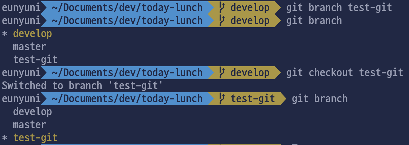 git branch {file이름}git branchgit checkout {file이름}- 해당 파일로 이동하려고함 (차원 이동)git branch- 해당파일에 *붙음을 확인 (복붙한뒤 메인을 옮긴 것)